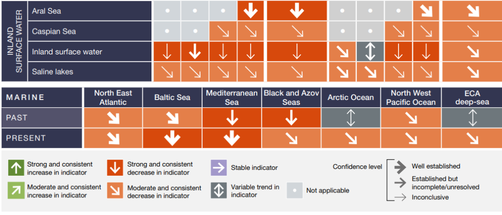 include increases in some fish stocks in the North Sea and in plankton diversity in the Black Sea(well established)